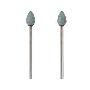 特徴 ■用途 ガラス、セトモノ、金属などの研削、彫刻、研磨に。 ■材質 GC砥石150番 仕様 サイズ 形状:卵型φ6.5mm×10mmシャフト径:φ2.35mm 入数 2本 26778