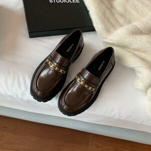 】金色のチェーン付きデザインでを演出。厚底ソールが脚長効果をもたらし、スタイリッシュで豊かな印象に。春秋の季節にぴったりのバラエティ豊かなスタイルにマッチする厚底復古ローファーです。新しいシーズンのをリードしましょう...