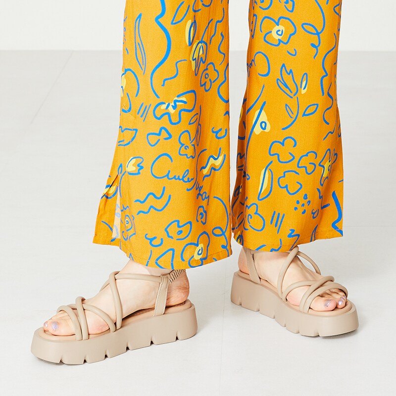 新作サンダルが登場! ■商品説明 ニット素材のストラップに艶やかなサテンテープを重ねた、デザイン性が光る厚底サンダル。サテンテープのダブルベルトで、足をしっかりとホールドしつつ、ニットのアッパーで柔らかく履...