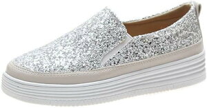 ◆◇◆売れている秘密◆◇◆ ☆ フラットな厚底とキラキラしているスパンコールでドレスアップさせた大人カジュアルな厚底スリッポンシューズ。 ☆ 脱ぎ履きが楽ちんなスリッポンタイプで、上品さの中にも程よいリラックス感が