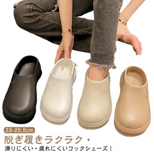 脱ぎ履きラクラク・滑りにくい・疲れにくいコックシューズ!アッパーにはEVAを使用したことで、撥水性、耐油性がよくなり、汚れが拭き取りやすくなりました!中敷には抗菌防臭加工・水洗いができていつも清潔!アウトソールにはクッシ