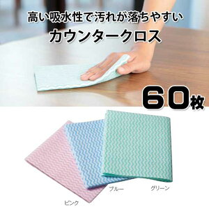 清掃用クロス カウンタークロス レギュラー厚手(60枚入) ■材質:レーヨン、ポリエステル不織布 ■サイズ:350mm×600mm ■規格色:グリーン・ブルー・ピンク ●高温多湿な場所での保管は行わないでください...