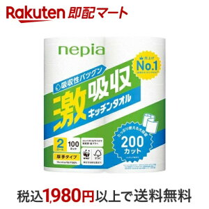 ★注目キャンペーン情報★ 商品情報商品詳細ネピア 激吸収 キッチンペーパー 厚手タイプ 2枚重ね●たっぷり使える大容量200カット(2ロール1パックあたり)。●厚手タイプで水や油をたっぷり、すばやく吸収!●フレッシュパルプ100%製品です