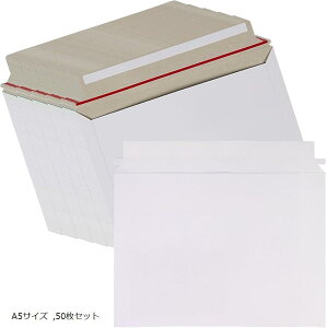 【セット内容】厚紙封筒 白 A5サイズ 50枚 【サイズ 】約横190mm 縦245mm 折り返し45mm 【材質】コートボール 350g/m2 【商品特徴】粘着力強い封緘テープと開封ジッパー付きでいつも発送作業らくらく...