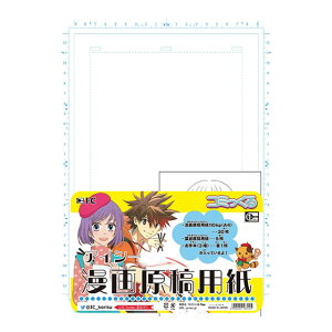 描き味を追求した漫画専用上質紙を使用。紙はピュアホワイトで、枠線・目盛りはブルー(水色)で印刷されています。投稿用 B4判(257×364mm)上質紙135kg/35枚入