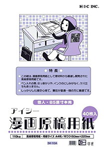 商品名 アイシー 漫画原稿用紙 B4 品番 40700004 仕様 特長:オリジナルの特別な白上質紙 ●用紙の原材料から選び、漫画に最適な紙を開発したアイシーオリジナルの特別な白上質紙です。 ●描き心地を追求し...