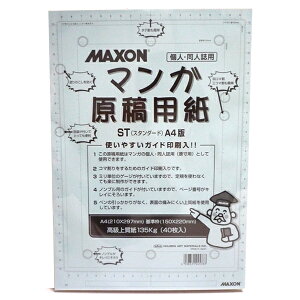 コマ割りするためのガイド印刷入りミリ単位のゲージ付きで定規なしで製作も楽チン!!ノンブル用ガイドでページ番号もキレイにそろう。 【メーカー名】ホルベイン 【商品名】MAXON マンガ原稿用紙 ST(スタンダード)A4...