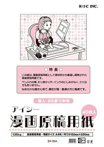 ◆商品名:アイシー マンガ原稿用紙 A4 厚135kg IM-35A筆圧が弱い〜普通の方、トーンを多く貼る方に最適です。40枚入、個人・B5原寸用 用紙サイズ210×297mm、 断切サイズ182mm×257mm...