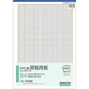 コクヨ PPC用原稿用紙B4 コヒ-105JANコード:4901480005966【寸法】 257×364×6mm【サイズ】 B4 【罫内容】 5mm方眼 ブルー刷り【紙厚】 75g:m2 【枚数】 50枚...