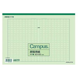 キャンパスの原稿用紙です。●仕様/B4特判、50枚●寸法/252・358●罫/縦書き(20×20)、罫色:緑●紙質/上質紙(薄口)●単位(入数)/1セット(10冊入)●メーカー品番/ケ−60N−G×10