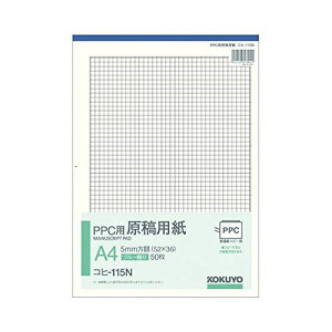 コクヨ PPC用原稿用紙A4 コヒ-115JANコード:4901480006031サイズ:A4タテ・ヨコ:297・210罫内容:5mm方眼・ブルー刷り行数(タテ・ヨコ):52×36PPC用原稿用紙A4 5ミリ方眼ブルー刷...