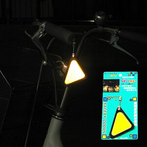 ハンドルグリップに装着した本品は、遠くから車のライトに反射し知らせます。 裏と表の反射材の色を変えているので、走行すると回転し点滅信号のようにみえます。 バックのファスナー等に引っ掛けて使用でき、夜間の交通安全に役立ち