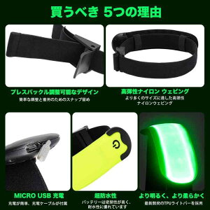 LED ライトアームバンドランニング USB充電式自転車 反射板リフレクターアームバンド 視認性350m 高輝度 伸縮性 調整可能誰にでも適していますバンド防水ウォーキングテールライト安全な夜の散歩に最適...