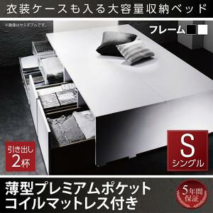 衣装ケースも入る大容量デザイン収納ベッド 薄型スタンダードボンネルコイルマットレス付き 引き出しなし セミダブル 組立設置付 【ts102967】