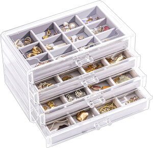 透明なアクリル製のジュエリーボックスは、お気に入りのジュエリーをほこりから守られ、お手入れも簡単です。br?引き出し付き:3つ引き出しが、小分けの仕切りが付いて、様々なアクセ