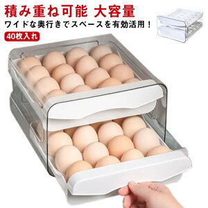 用!・冷蔵庫の限られたスペースに、合計40個もの卵を収納できるケースです。・上下に20個ずつ卵を保存できる、2段式の引き出しタイプです。・引き出しタイプなので奥のものが取り出しやすく、透明で