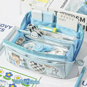 200*80*100mm 仕切りペンケース 筆箱 大容量 透明 撥水 学生 社