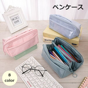 ペンケース 筆箱 ペンポーチ プラスチック 文房具 無地 大容量 収納 軽量 箱型 小物入れ 仕切り 女の子 中学生 小学生 高校生 女子高生 学校用