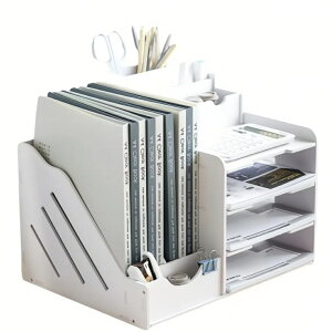 【全国送料無料】大容量で多機能な卓上収納ラック。書類や文房具をすっきり整理できます。