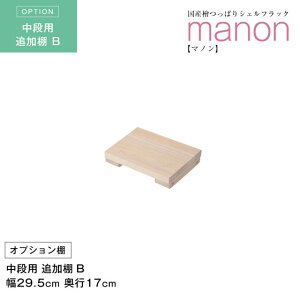 天井つっぱりシェルフラック 薄型17cm奥行き 30cm幅タイプ 中段用追加棚 B棚 (連結棚併用) 日本国産ひのきを原材料に使用した、天井つっぱりタイプの壁面ラック 薄型17cm奥行き×30cm幅タイプ用の追加棚です 幅広の上下部分用と