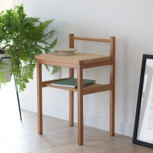 ナチュラル×クラシカルな雰囲気を演出。天然木とラタンを使用したナチュラルなイメージのデザインながら、ターンドレッグ(ろくろ脚)を採用することで、クラシカルな雰囲気も感じられるオープンシェルフ&サイドテーブル。