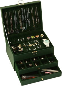 -------商品詳細------- 【3層構造の大容量多機能収納】1段目はフリップトップのフタ、下2段は引き出しになっており、大容量のアクセサリーケースは、すべてのジュエリーが見やすく、1か所で管理できるので...