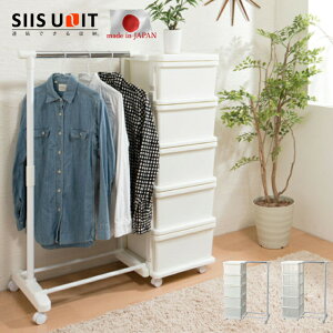 ハンガーとラックが一緒になった画期的なチェスト!洗濯後ハンガーで干して乾いたら隣りのチェストに収納。キャスター付きで移動もらくらく。1段あたりの収納目安はYシャツなら約6枚・セーターなら約4枚・バスタオルなら約4枚が入る収