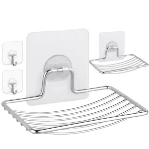 JEWYOCO 2個 石鹸置きソープホルダー お風呂の壁に 石けん皿 ステンレス強力粘着収納ケース 水切り お風呂用品【セット内容】:サイズ:13*9cm 材質:ステンレス(本体) 数量:2個ホルダー...