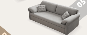 品は、2人掛けソファと背もたれのない1人掛けソファで構成されており、自由に配置を変えることができます。///ソファベッドへの変形:2人掛けソファの背もたれは簡単に倒すことができ、ソファ