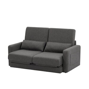 品は、2人掛けソファと背もたれのない1人掛けソファで構成されており、自由に配置を変えることができます。///ソファベッドへの変形:2人掛けソファの背もたれは簡単に倒すことができ、ソファ