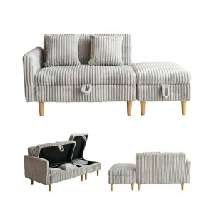 【組み合わせ自由】ソファーベッド 2人掛けソファ 3人掛け 収納付き オットマン付き クッション2個付き コンパクト おしゃれ 北欧 天然木脚 一人暮らし 低め 2P カウチソファ オット