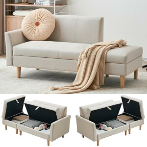たくさん収納できるソファーとオットマン。ソファー,オットマンとも収納スペースついています。布団、オモチャなどの生活用品を簡単に収納できます。肘掛けにも収納袋付き、雑誌、スマホやリモコンなどの小物を収納できます...