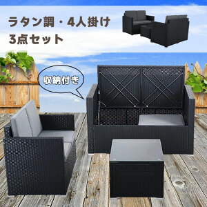 【1年保証/送料無料】【4人掛け/3点セット】ガーデン テーブル セット 雨ざらし アウトドアソファ 3点セット