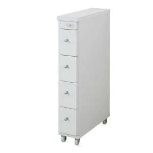 【内容】すき間が収納スペースになる引出し式ワゴン。すき間ワゴンはサニタリーやキッチンにぴったりのスリムワゴン。天板・前板は汚れに強く、お手入れ簡単。キャスター付なので移動がラクラク。前面には便利なコンセント1口付...