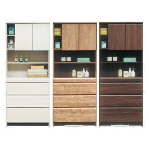 側面:プリント化粧板。[備考]国産品(日本製)、完成品。中央部付近にはスライド棚付き。下部には体重計などを収納可能なスペース付き。引き出し全段スライドレール付き(最下段の引き出しのみフルオープンスライドレール付き)...