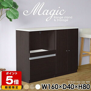 magic レンジ台×収納庫 W160×D50×H80 木目サイズサイズ:約幅1600 奥行き500 高さ800 mm材質[天板・スライド棚]メラミン樹脂化粧合板[前板]ブラウン・ダークブラウン・チー...