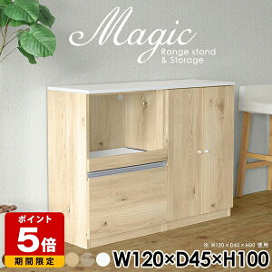 magic レンジ台×収納庫 W120×D45×H100 木目サイズサイズ:約幅1200 奥行き450 高さ1000 mm材質[天板・スライド棚]メラミン樹脂化粧合板[前板]ブラウン・ダークブラウン・...