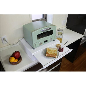 電子レンジやトースターの下に置くだけで便利な作業スペースができる、家電下引き出し収納スライドテーブル。