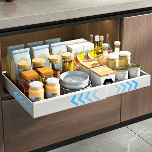 「引出し式収納ラック」 シンク下収納を上手く活用できる便利アイテムです。スライド式の設計は奥のものも簡単に取り出すことができ、使用習慣に応じて自由にアレンジできます。 「使用空間に応じて幅調整可能」 ラックの幅は32cm-52cmの範...