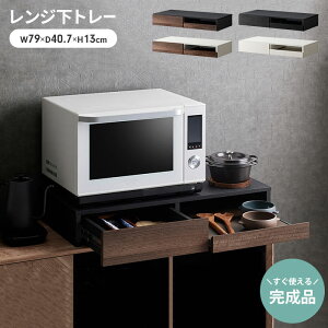 レンジの下にちょこっと置きと収納をプラス出来る引き出し付レンジ下トレー。 トレーは必要な時だけ引き出せて、ご飯の取り分け・料理スペース・一次置きなどの作業スペースに◎ スライドテーブルは約30cm前方へ出て...