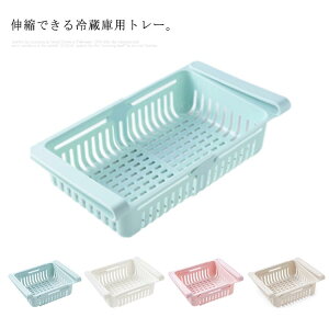 収納物に合わせてサイズが変更できる伸縮式収納かごがとても便利。 棚板に取り付けるだけで簡単設置完成! 引き出し式なので物の出し入れも楽チン。 わさびなど小物類だけでなく、たまごやフルーツなどもス