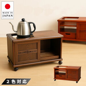 和の空間にピッタリな国産のポットワゴン 【サイズ】 ■幅(W)597×奥行(D)330×高さ(H)350mm 【材質】 ■ニレ 【カラー】 ■遠野色 ■欅色 【備考】 ■可動棚1枚付き ■お盆1個付き ■キャスター付き ■塗装:ウレタ...