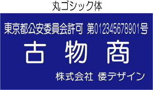 本体サイズ:W160mm×H80mm 材質:アクリル板 2mm カラー:青色 1.公安委員会名: 2.許可番号: 3.商名: 4.法人名(法人許可)・許可者氏名(個人許可):