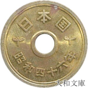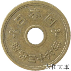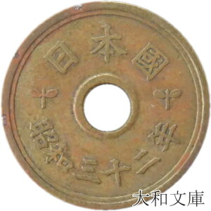 昭和24年から33年にかけて発行された5円硬貨です。※昭和29年・30年・31年の発行はありません。現在の5円玉とそっくりですが、細部に違いがあります。