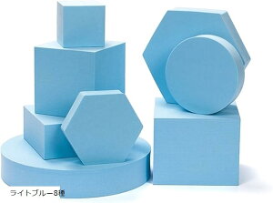 品名撮影小道具 台座 8種セット 撮影セット 立方体 円柱 商品撮影 ディスプレイ ライトブルー8種ブランドLeiasnowカラーライトブルー8種・幾何学型の撮影用オブジェ8種セットです。撮影用の...