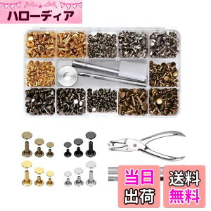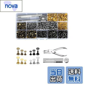 ズ (6*6mm/8*8mm/8*12mm)各30組;3種色(ゴールド/シルバー/ガンメタル);工具*3(穴あけポンチ*1/打ち棒*1/打ち台*1);収納ケース*1(ケースサイズ:17.8×10.5×2.35cm)...