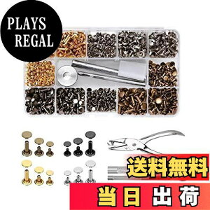 ズ (6*6mm/8*8mm/8*12mm)各30組;3種色(ゴールド/シルバー/ガンメタル);工具*3(穴あけポンチ*1/打ち棒*1/打ち台*1);収納ケース*1(ケースサイズ:17.8×10.5×2.35cm)br【...