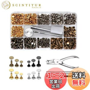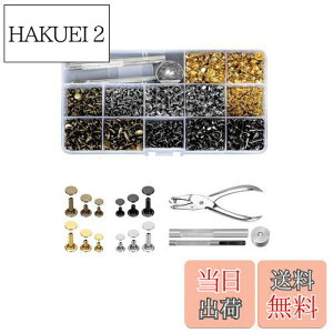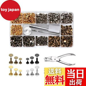 ズ (6*6mm/8*8mm/8*12mm)各30組;3種色(ゴールド/シルバー/ガンメタル);工具*3(穴あけポンチ*1/打ち棒*1/打ち台*1);収納ケース*1(ケースサイズ:17.8×10.5×2.35cm)br【...