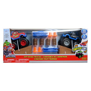 セット説明 マーベルのかっこいいオフロードトラックセットです。 押すと進むフリクションカー。 車が2台入っているので...