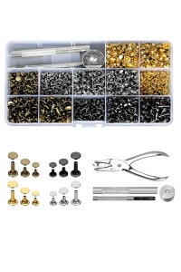 【高品質】スタッズは丈夫で耐久性が強い銅メッキ金属材料で作られています。光沢もあり、華やかなで仕上がりが美しい印象を与えてくれます、レザー工芸品で綺麗な飾りものとして大活躍です。 【パッケージ内容】カシメセット*360組、
